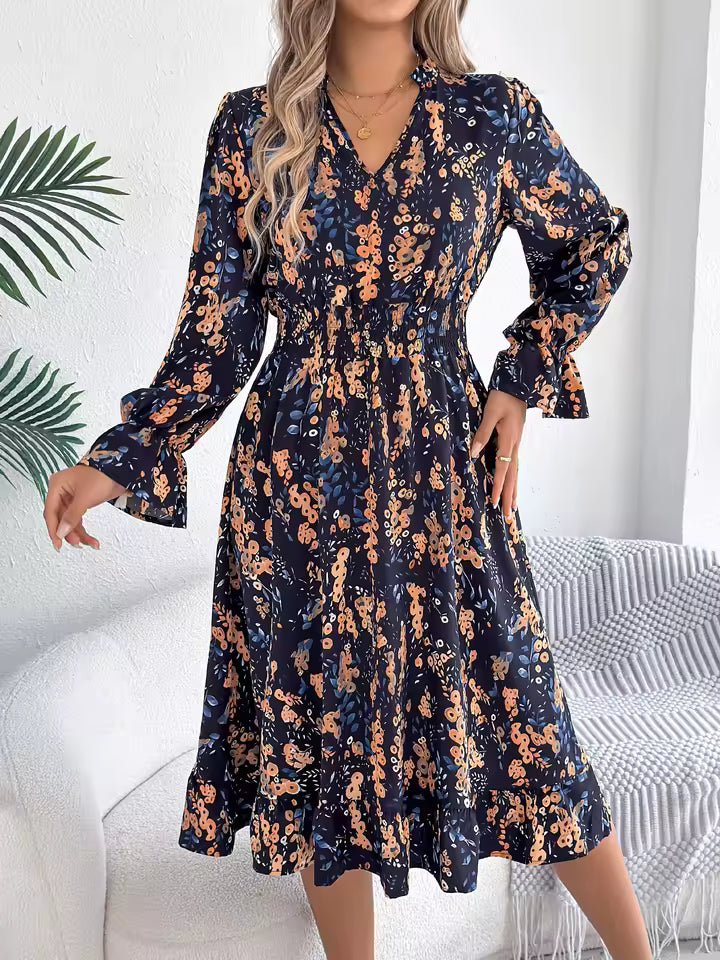 Robe Élégante Fleurie Manches Évasées