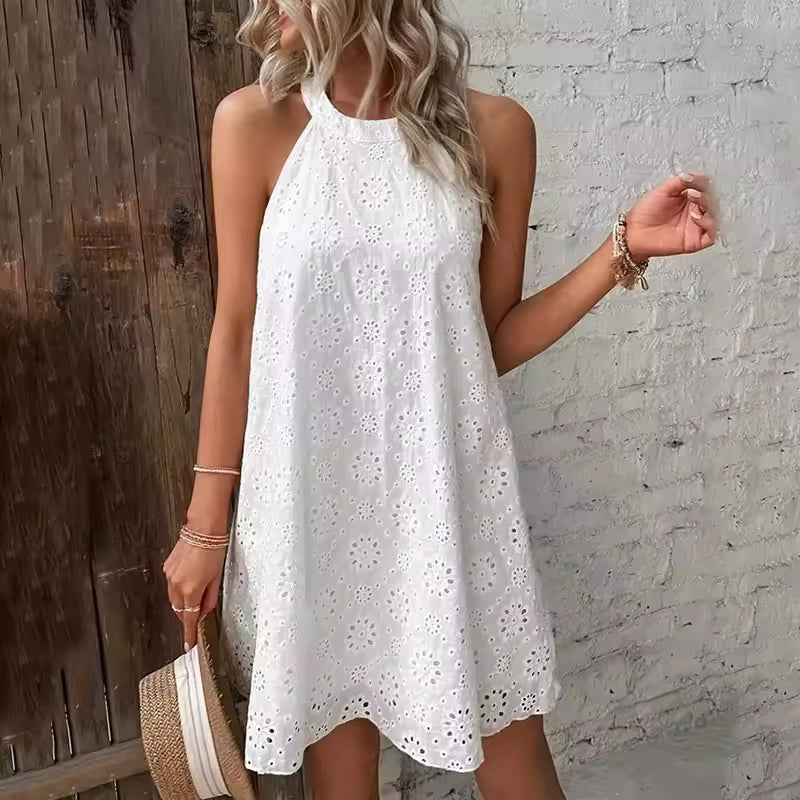 Robe Blanche Ajourée Élégante Femme