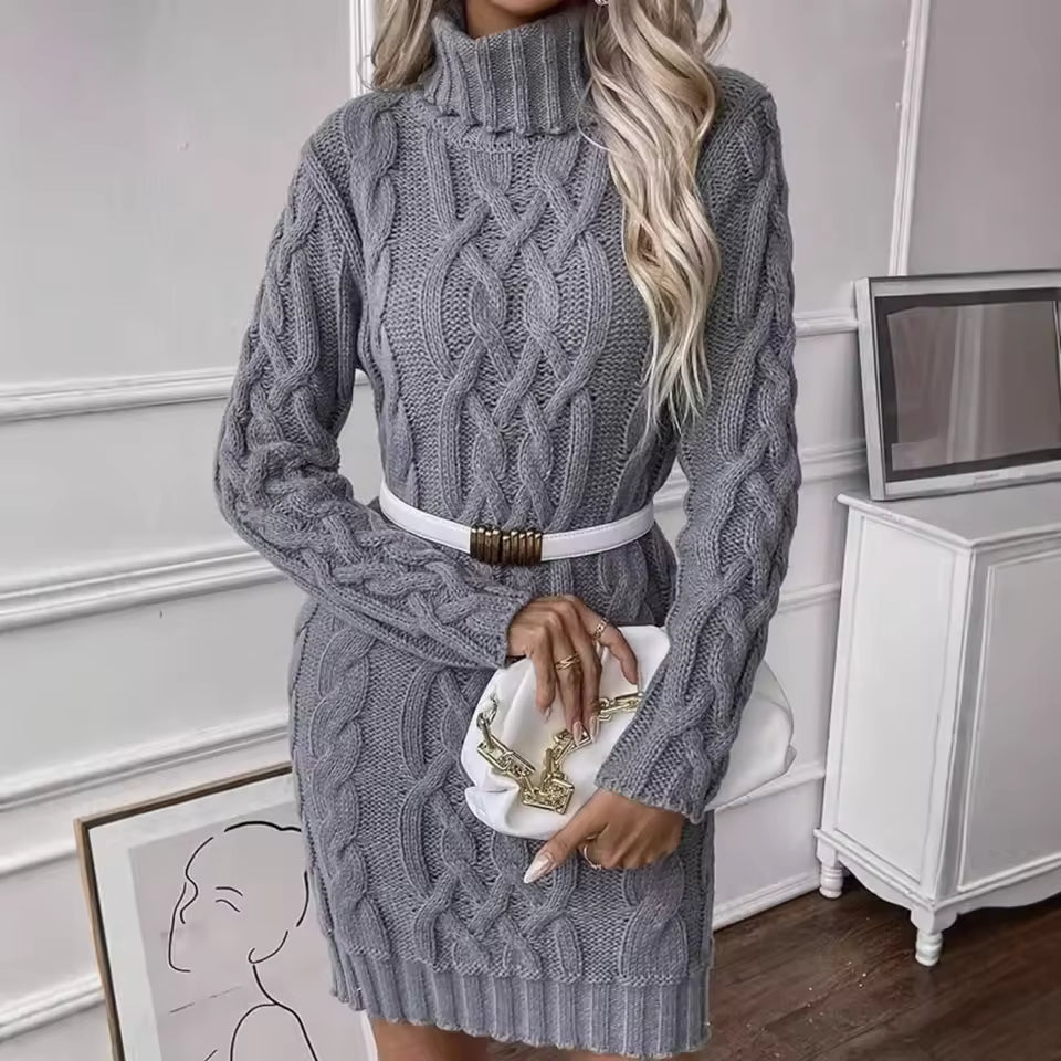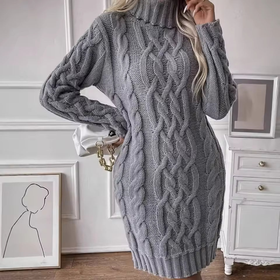 Disponible en plusieurs coloris élégants, cette robe tricotée à col montant incarne la féminité moderne : simple, chic et intemporelle — un essentiel de garde-robe pour la saison froide.