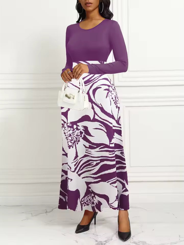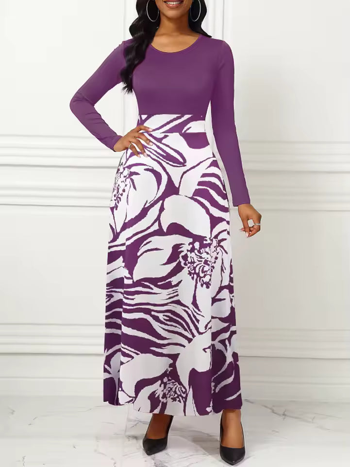 Découvrez une robe longue au style élégant et intemporel, conçue pour sublimer chaque silhouette. Avec son col rond classique, ses manches longues et son ourlet imprimé délicat, cette pièce offre un parfait équilibre entre simplicité raffinée et féminité moderne.