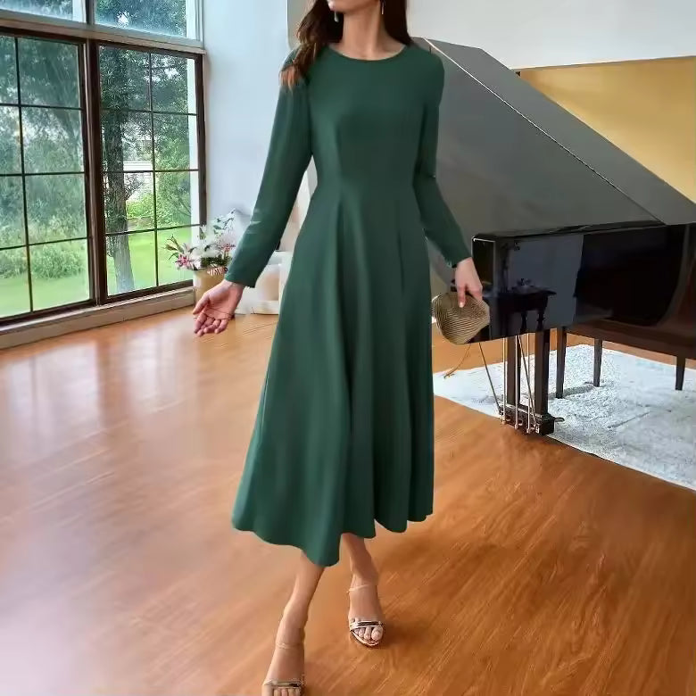 Cette robe longue unie combine simplicité, confort et sophistication. Parfaite pour la saison automnale, elle offre une silhouette chic et naturelle tout en restant très agréable à porter au quotidien.