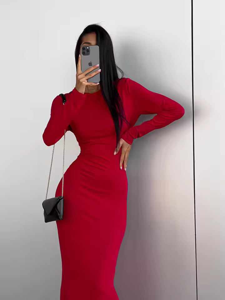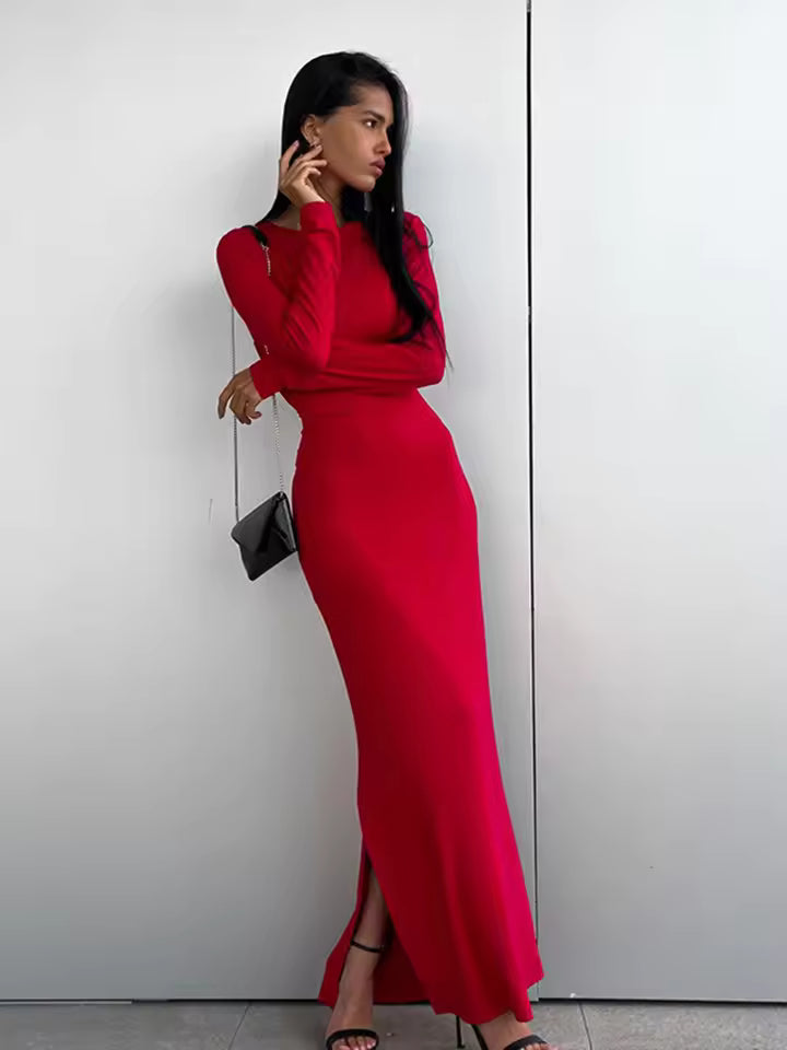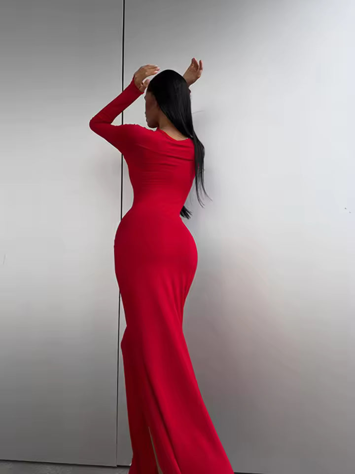 Le col O-neck apporte une touche de simplicité chic, équilibrant parfaitement le côté sensuel de la robe pour un look harmonieux et glamour.