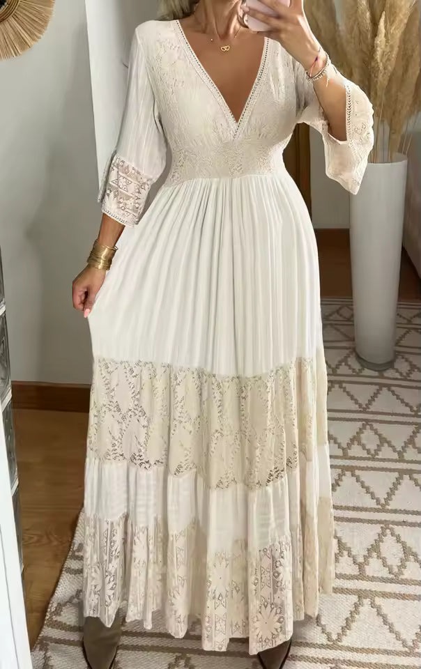 Le décolleté en V orné de dentelle apporte une touche raffinée et romantique, tout en mettant en valeur le buste.